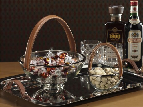 ZODAX EQUESTRIAN BOWL WITH LEATHER HANDLE, LARGE