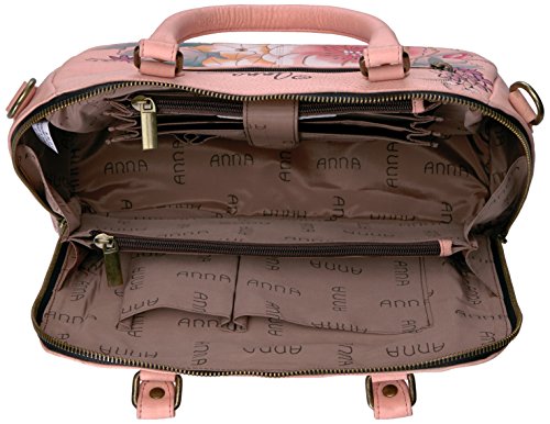 All round zip entry to main compartment.Inside one full length zippered compartment. Four open wall pocket, one zippered pocket with closure. Two multipurpose pockets, two cc holders, two penholders and an id window. Two gusseted zippered front pocket. Rear full length zippered pocket, slip in cell pocket. Double rope handle with drop of 6” adjustable shoulder strap with maximum drop of 26” 12.5” x 10.5” x 4.5”