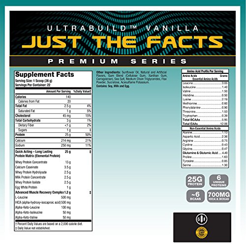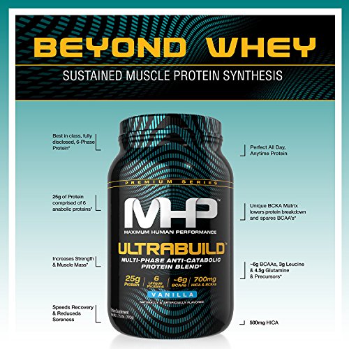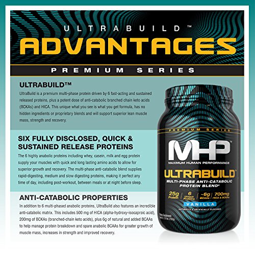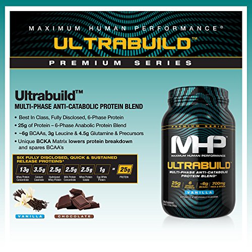 ReleaseDate : 2017-05-08 Studio : Maximum Human Performance Publisher : Maximum Human Performance Binding : Health and Beauty Product Description Maximum Human Performance Ultra build is a new multi-phase anti-catabolic protein blend. The protein blend contains 25g of protein where 13g comes from whey concentrate, 3.5g comes from calcium caseinate, 2.5g comes from whey hydrolysate, milk concentrate, and whey isolate each, and 1g comes from egg white protein. Ultra build features a wider variety of protein sources with fast and slow release forms, as well as a few extra ingredients to help with recovery. 0