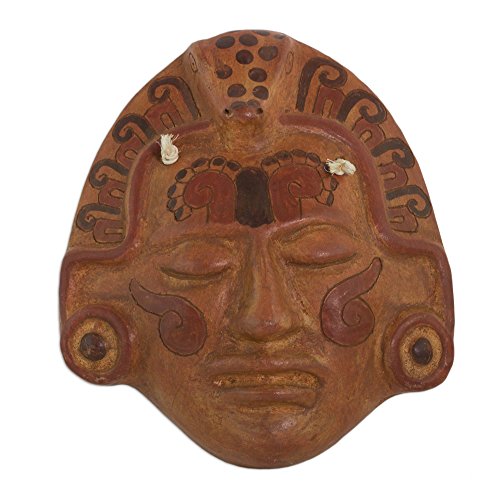 NOVICA Decorative Maya Ceramic Mask, Brown 'Maya Crocodile Priest'