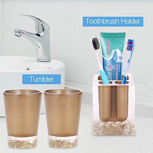 Package includes: 2 x Tumblers 1 x Soap dish 1 x Toothbrush Holder 1 x Lotion Dispenser
