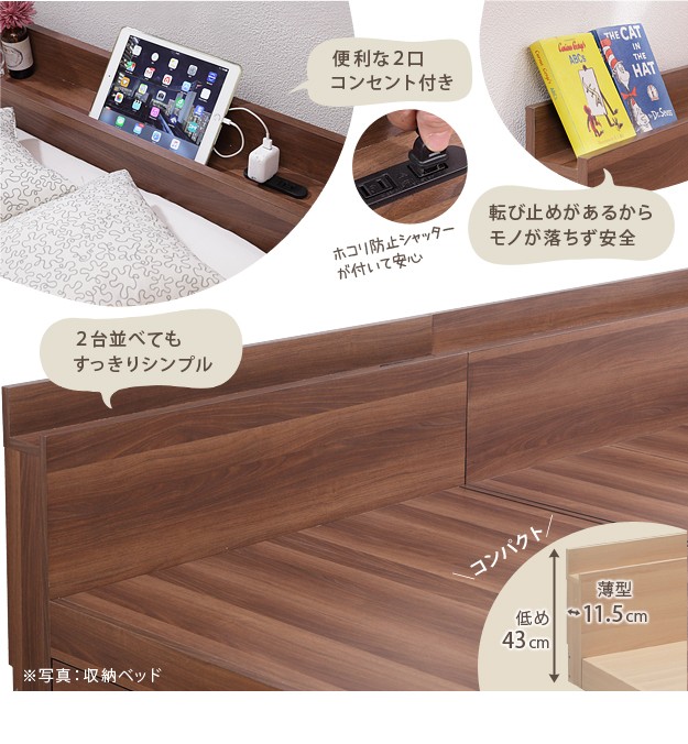 材質:本体-プリント紙化粧パーティクルボード(木目柄)、本体内側補強板-パーティクルボード、コンセント-2口(フタ付き)合計1500W・コード長1.8m