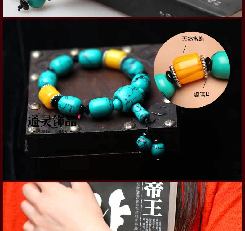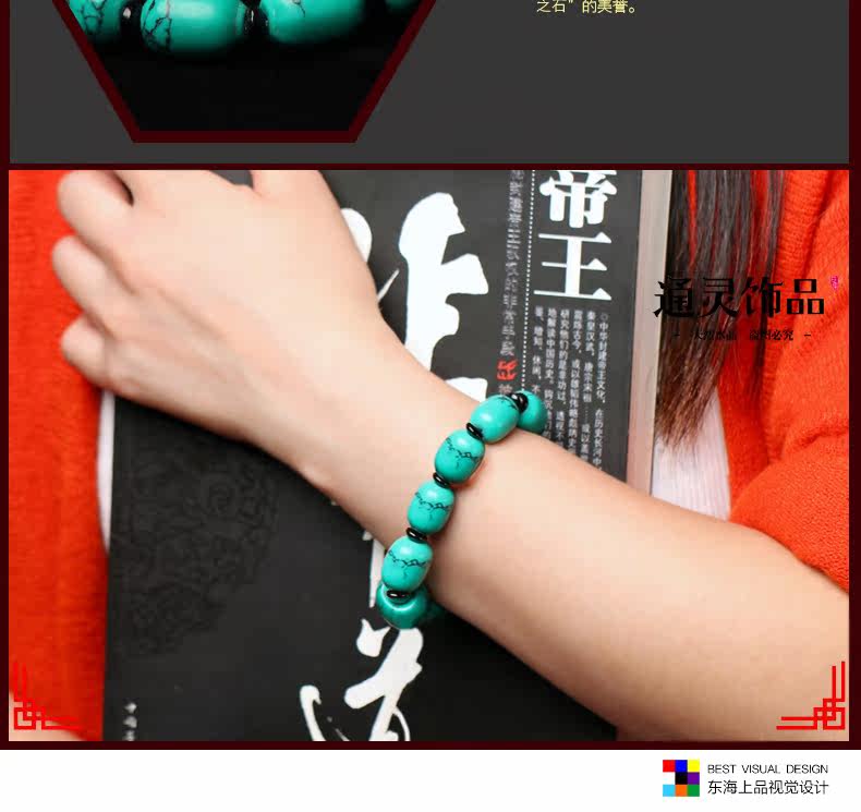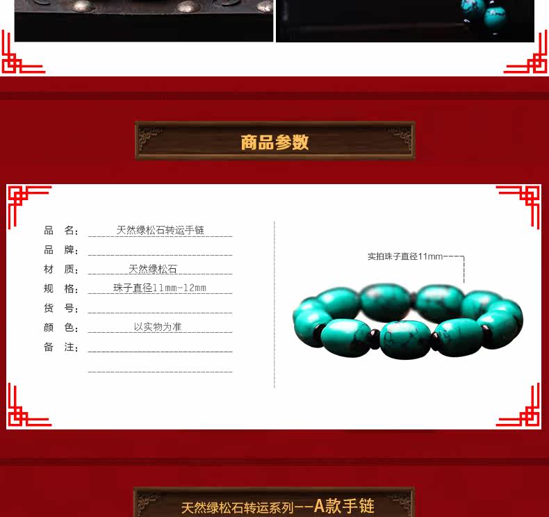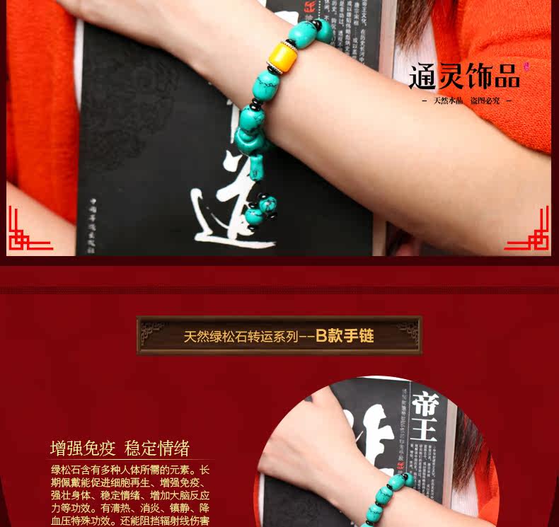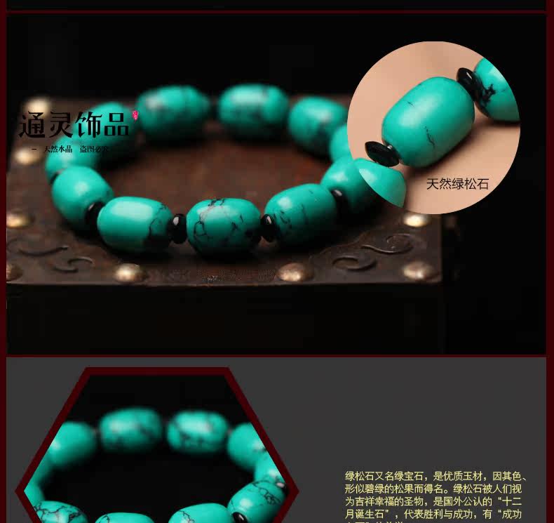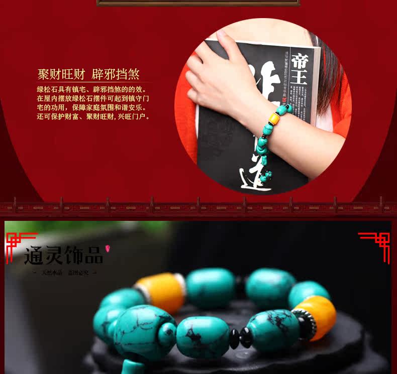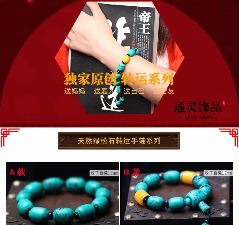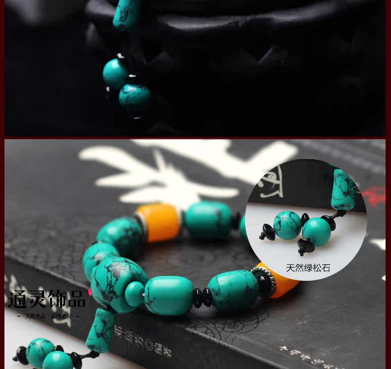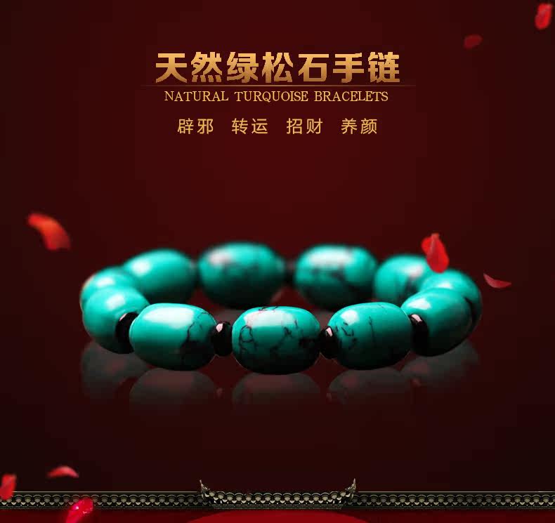 原创天然绿松石桶珠手链情侣款水晶佛珠手串转运招财男女饰品