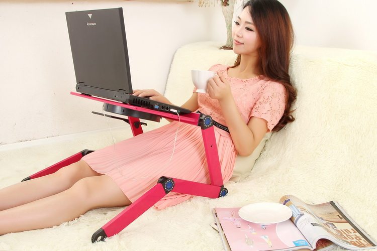 Adjustable Vented Laptop Table Laptop Computer Desk Portable Bed Tray Book Stand Multifuctional & Ergonomics Design Dual Layer Tabletop up to 17"
