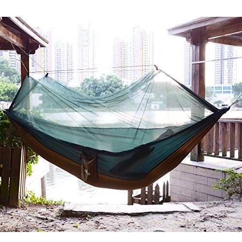 QYUHE Camping Hammock with Mosquito Net Portable Nylon Fabric Travel Double Hammocks for Outdoor Hiking Backpacking Backyard Beach 8.53 x 4.6 ft
