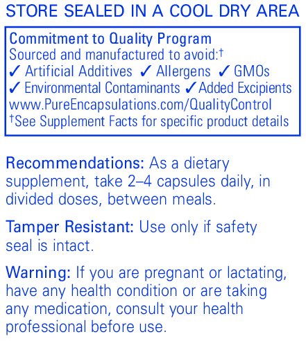DOSAGE: Pure Encapsulations recommends 2-4 capsules per day, in divided doses, between meals.