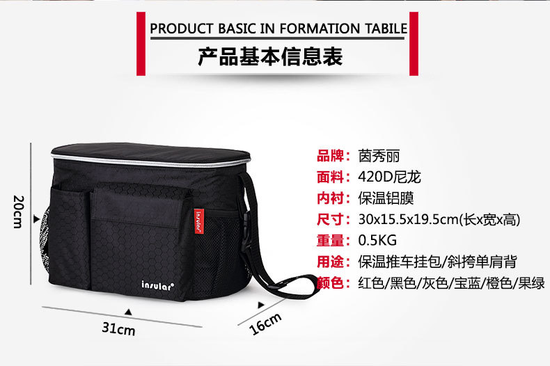茵秀丽妈咪包母婴包防水保温推车用妈咪包童车挂包婴儿车挂包