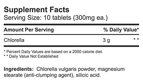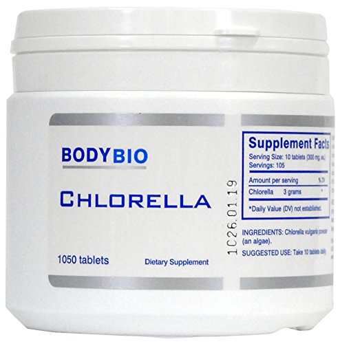 -. Feature : NUTRIENT-DENSE NOURISHMENT - Chlorella contains a broad spectrum of vitamins and minerals, as well as unsaturated fatty acids and antioxidants.* / GUARANTEED PURITY - BodyBio Chlorella is grown in glass tubes inside and is totally free of contamination. This is a patented process that is safe and absolutely pure.* / BENEFICIAL TO GI HEALTH - Offers cleansing support to the GI system.* / COMPLETE AMINO ACID BASE - Chlorella is made up of a whopping 50 percent protein and is considered a complete amino acid-based food to benefit gastrointestinal health.* / DIRECTIONS - The recommended dosage of Chlorella is approximately 3 grams per day, which equals 10 tablets (300 mg each) for approximately 3 months. / YOUR ROADMAP TO BETTER HEALTH - Scientifically dedicated since 1995, BodyBio Inc. is one of the few organizations in the world that has been able to keep pace with the available research on the implications of nutrition on health.*