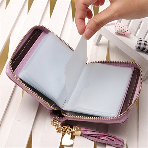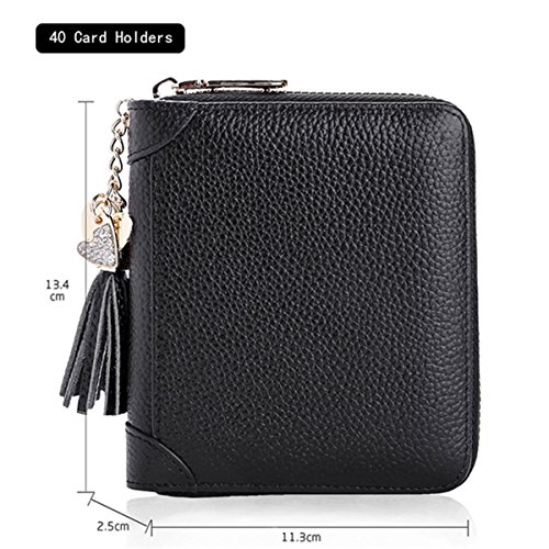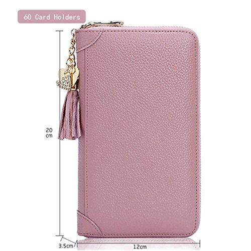 Binding : Apparel Product Description Information: Material: Genuine Leather Lining Material: Polyester Color: Black, Blue, Rose Red, Pink, Purple, Dark Pink Weight: 360g Closure: Zipper 20 Card Slots: Length:8.5cm(3.35') Width:2cm(0.78') Height:11.5cm(4.45') 40 Card Slots: Length:11.3cm(4.45') Width:2.5cm(0.98') Height:13.4cm(5.27') 60 Card Slots: Length:12cm(4.72') Width:3.5cm(1.38') Height:20cm(7.87') Package Include: 1 x Card Holder Please Note: About size: Inacurrancies of 2cm/1 inch may appear, due to human error. Please refer to our size chart only as a reference About color: The precise color of the items may vary depending on monitor, light settings and conditions. Colors as shown on our images should only be used as a reference. Are you still worried about a lot of cards? BUY IT! The zipper design of this card case can effectively protect your card!Choose our lovely card wallet,organize your cards right now!It's the best gift for women.