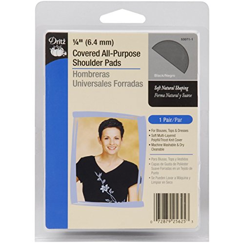 Studio : Dritz Publisher : Dritz Product Description DRITZ-Covered All-Purpose Shoulder Pads: 1/4 inch. These shoulder pads feature multi-layered molded polyfill filling and a tricot knit cover. Use them in tops; dresses; and blouses. Machine Washable and Dry Cleanable. Color: Black. Each pad measures 5-1/2x3x1/4 inch. This package contains one pair of shoulder pads. Imported. 0