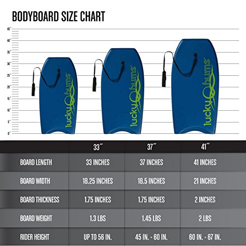 -. Feature : FUN AT THE BEACH - Reading on the beach and getting a tan is enjoyable and relaxing, but nothing compares to the thrill of riding a wave. However big or small you are, the Lucky Bums Body Board is ready for hours of fun at the beach, river, or waterpark. / DYNAMIC DESIGN - The Lucky Bums Body Board has 60/40 rails, rear channels, and a high-density polyethylene slick bottom, which were designed for all wave conditions and give the board excellent control, more maneuverability, and increased speeds. / DURABLE CONSTRUCTION - Along with its high-density polyethylene bottom, an engineered EPS core makes this boogie board lightweight, durable, and buoyant. It's ready for as many drops and wipe outs on the sandbar as you are. / COMES WITH A LEASH - This board doesn't require any modification; it's ready to ride out of the box. Strap the leash to your wrist and have it secured to you through any wipe out. / SATISFACTION GUARANTEED - When you receive a Lucky Bums product, if you are not 100% satisfied with your purchase, let us know. We are here for our customers and will respond promptly and professionally in order to fix any problems you may have.