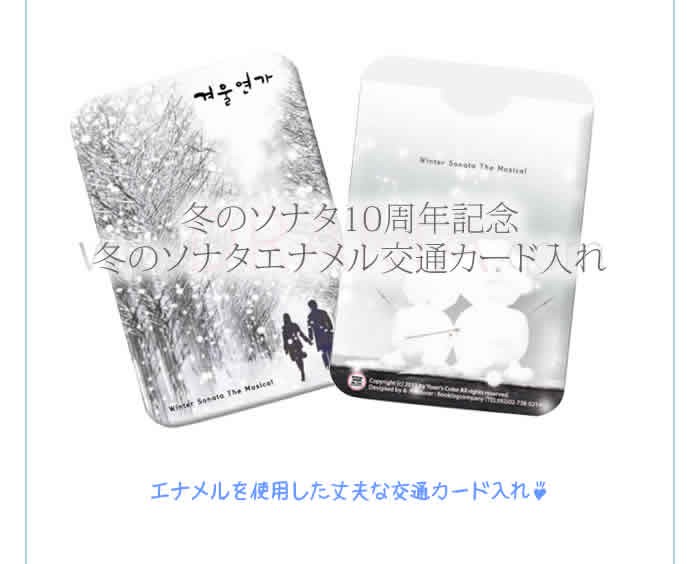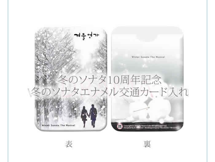 初恋という運命に翻弄される二人の純愛物語。主人公は明るくおてんばな女子高生、ユジン(チェ・ジウ)と、謎めいた転校生チュンサン(ペ・ヨンジュン)。ユジンは暗い陰を持つチュンサンに持ち前の快活さで向き合おうとし、チュンサンも、そんなユジンにだけは少しずつ心を開いていく。その二人の様子をユジンの幼なじみ、サンヒョク(パク・ヨンハ)は、複雑な思いで見つめていた。そんな中、別れはあまりにも突然に訪れた。惹かれ合う二人が待ち合わせをした大みそかの夜、チュンサンが不慮の事故でこの世を去ってしまう。雪の中、現われないチュンサンを、ユジンはいつまでも待ち続けるのだった。10年後、設計事務所で働くユジンは、サンヒョクにプロポーズされ、婚約することになる。サンヒョクとの幸せな未来に思いを馳せるユジンだったが、10年前の心の傷が完全に癒えたわけではなかった。そんなある日、不思議な出来事が起こる。高校時代の仲間チェリン(パク・ソルミ)が、チュンサンに生き写しの男性、ミニョン(ペ・ヨンジュン)を連れて現われたのだ。ミニョンはチェリンの恋人だという。動揺を隠せないユジンとサンヒョク。ミニョンの明るく自信にあふれた性格は、チュンサンとは違っていた。しかし、ミニョンとの出会いに何か運命的なものを感じたユジンは、10年の時を経て、チュンサンの思い出とサンヒョクの誠実な愛との間で葛藤する。そして、過去の愛に苦しむ一途なユジンの姿に、ミニョンも次第に惹かれていく?。果たしてミニョンはチュンサンなのか?そしてチュンサンの出生の秘密とは?ユン・ソクホ監督が繊細な感性で描き出す甘くせつないラブ・ストーリー。***冬のソナタ10周年記念グッズ! 冬のソナタドラマの雰囲気をそのままに、幻想的な美しい絵画で デザインされた交通カードケース*☆* エナメル素材で丈夫なので毎日に活躍します!***【サイズ】6.5×9.5cm【メーカー】コペン