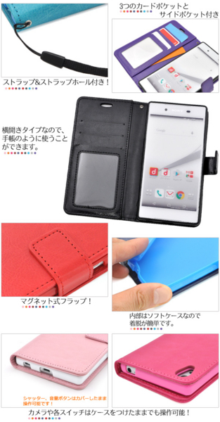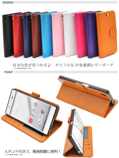 カラフルな10色展開のXperia Z5用カラーレザースタンドケースポーチ。