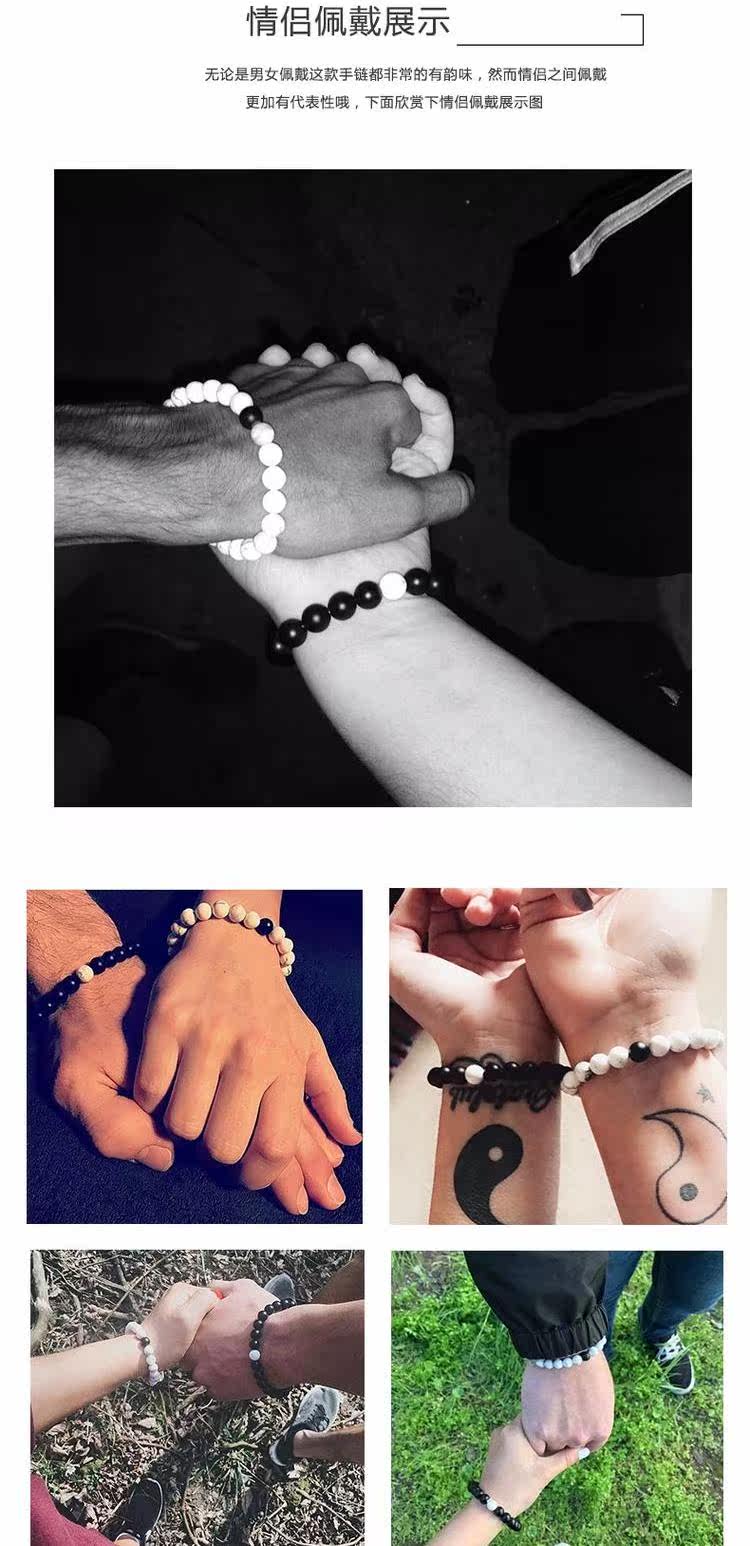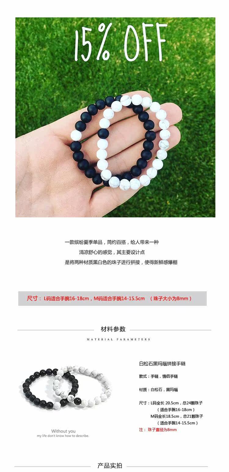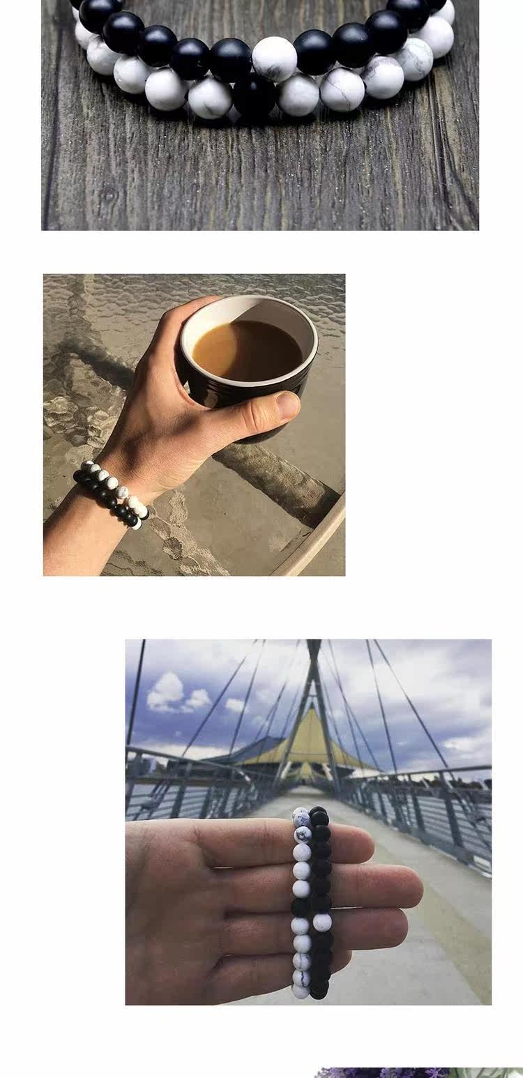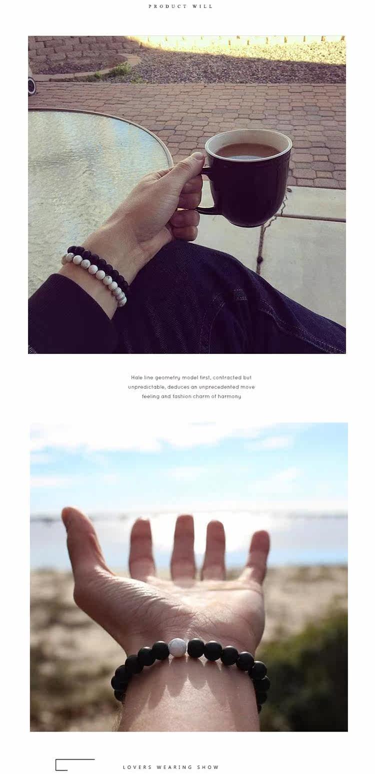 100% Handmade Couple Black Agate Beads Bracelet Artificial White Turquoise Stone Beads Braceletu0026nbsp;