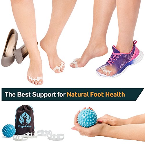 - Premium quality guaranteed: Yoga4You toe straighteners are ergonomically designed and made of durable and safe medical-grade silicone gel. - The one-size-fits-all It doesn't matter what size do you have, this therapy will make your feet feel relaxed. - Useful for great amount of foot issues: Toe stretchers help to improve circulation, straighten bent toes and realign joints.They can be used for both the prevention and treatment of a number of different foot and toe problems. - Good for Everyone: Perfect for ballet dancers, yogis, athletes, students who wear high heels, people who wear work boots, and service industry clients, who spend all day on their feet. Improve post-workout recovery upgrade your pedicures.