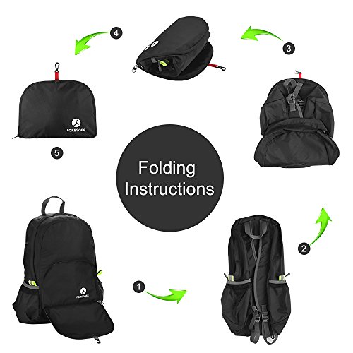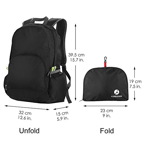 Foregoer 25l Ultra Lightweight Packable Backpack Portable Travel Daypack - Black