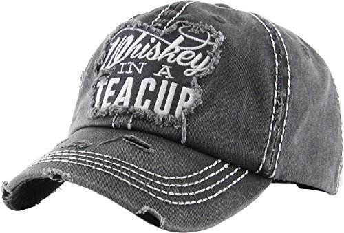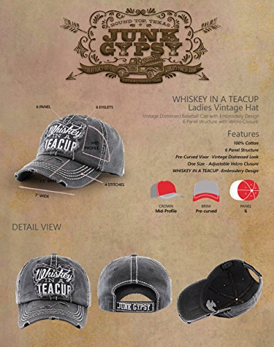 -. Feature : Junk Gypsy Brand Vintage Distressed Baseball Cap / WHISKEY IN A TEACUP Embroidery Design / One Size Adjustable Velcro Closure Fits Most Sizes / 100% Cotton Made / Pre-Curved Visor - Vintage Distressed Look - 6 Panel Structure