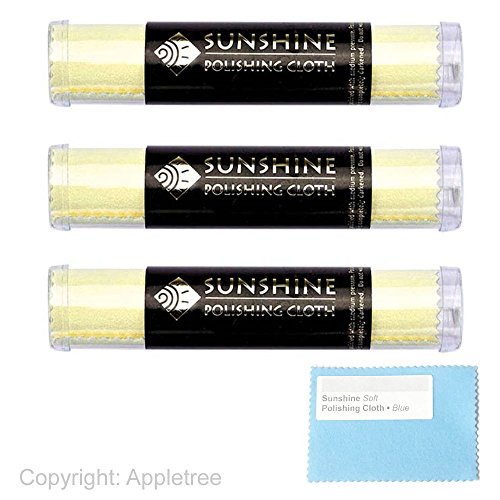 3 Sunshine Polishing Cloths for Sterling Silver, Gold, Brass and Copper Jewelry Polishing Cloth (3 tubes with 1 free Sunshine soft blue polishing cloth, and 1 free Appletree mini handbook.)