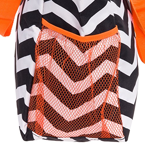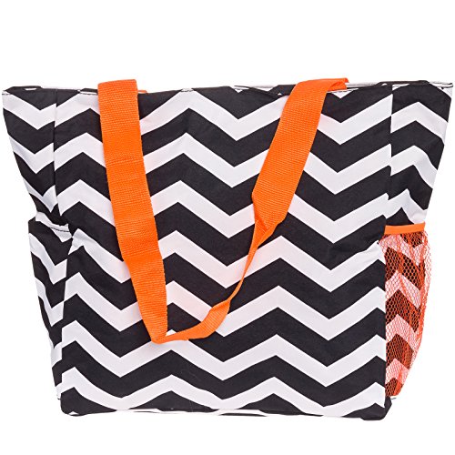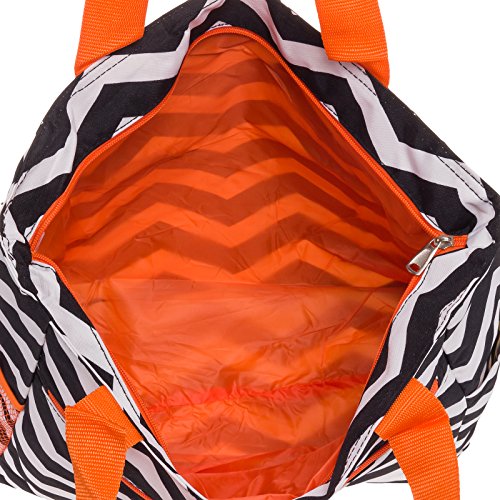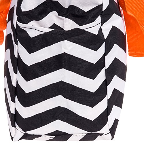 SilverHooks Womens Chevron Beach Tote Shopper Bag (Black & White w/ Orange Trim)