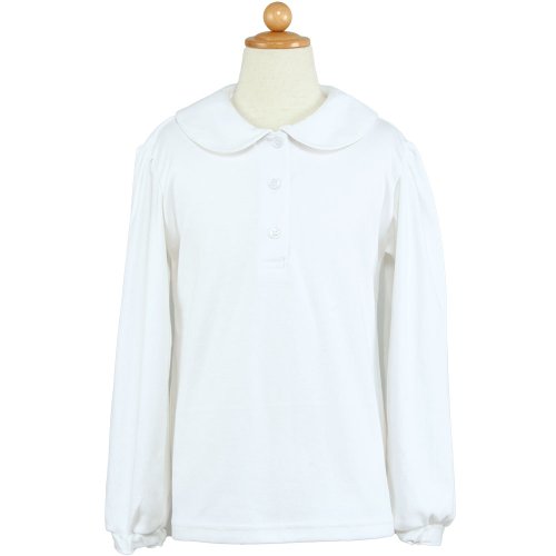 -. Title : 下着が透けないパフスリーブ長袖ブラウス【白】着脱簡単 すっぽりかぶりタイプ 手刺繍クローバー/リボン/お花/ピコレース/無地 puff-001l