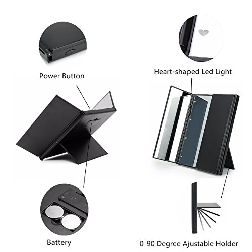 Widely Application:Tri-fold design enable you makeup up to see much more angle of your face than normal make up mirror. Perfect mirror for traveling. Lightweight and it's going to take up literally no room in your overnight bag, makeup bag or purse