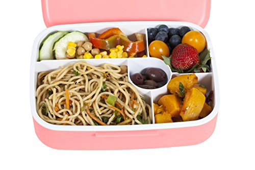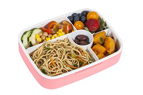 MAIRICO Premium Bento Lunch Box (Pink) for Adults and Kids - Beautiful 5 Compartment, BPA free, Leak-proof, Microwave, Freezer and Dishwasher Safe