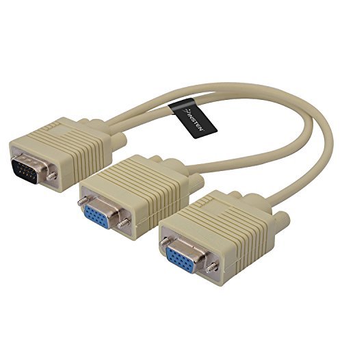 -. Feature : Premium VGA male-to-female video Y-cable supports single VGA signal to be switched in between two monitors without plug and unplug cables / Connects PC or laptop to multiple projectors, LCD monitors, and other video display systems / Connectivity: Connector HDDB15 15-pin (M x 1).Connector HDDB15 15-pin (F x 2). / Length: 7in / 0.2m / Cable Color: Beige
