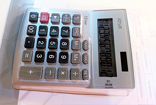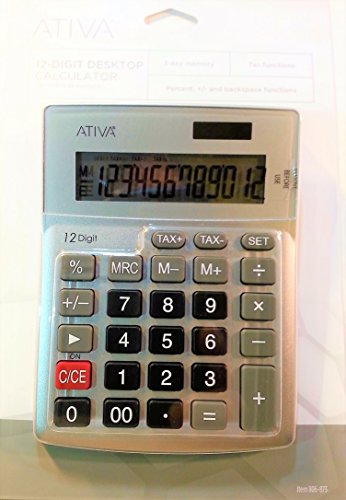-. Feature : 12 Digit Desktop Calculator. / 3-Key memory. / Tax functions. / Percent, +/- and backspace functions. / Angled Display, Double Cero (00), Dual Power - Solar & Batery.