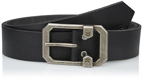 Tan single ply leather. Raw back of strap. Custom center bar buckle with tabs and embossed logos. Dark antique nickel matte buckle finish. Logo embossed on strap tip. 2 nail head rivets buckle connection