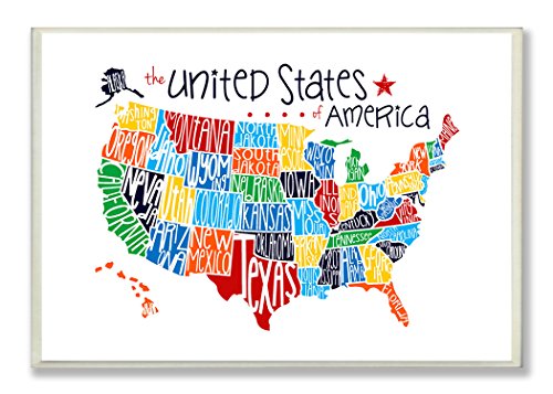 Stupell Home Décor Use Rainbow Typography Map On White Background Rectangle Wall Plaque, 11 x 0.5 x 15, Proudly Made in USA