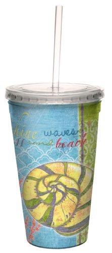Tree-Free Greetings cc33423 Fantasy Nautilus by Paul Brent Artful Traveler Double-Walled Cool Cup with Reusable Straw, 16-Ounce, Multicolored