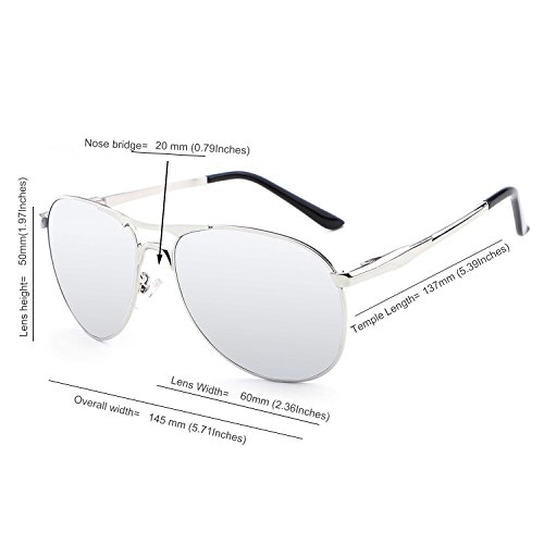 MEASUREMENT - Lens Height: 50mm (1.97 inches) Lens Width: 60mm (2.36 inches) Nose Bridge: 20mm (0.79 inches) Temple Length: 137mm (5.39 inches) Frame Length: 145mm (5.7 inches)