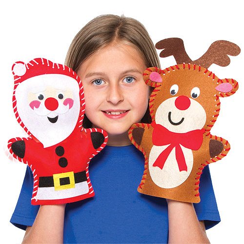 - Feature : Children will want to try their 'hand' at these! Festive felt hand puppets. / Each kit contains 10.2inch pre-cut felt puppet, / self-adhesive felt decorations, wiggle-eyes, plastic needle and yarn. / 3 assorted. Age 5+ / Delivered within 9 working days