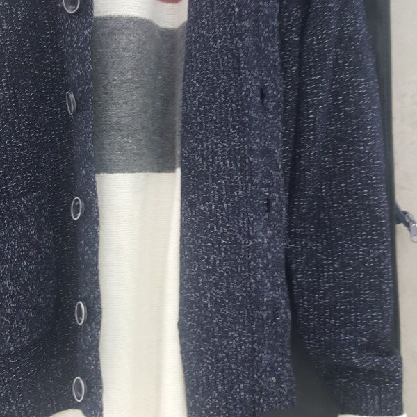 숄에리 가디건모 혼방.멜란지 네이비의 머스러움소매.밑단 주름처리 늘어짐 최소화
