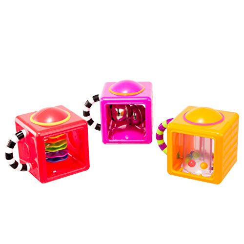 The Sassy Silly Sensory Blocks help babies and toddlers learn to stack with minimal frustration. Featuring Sassy Stay Trays, children can learn to stack, build, tear down and start all over again, all while using their imaginations. This 3pc musical set features large blocks that shake and rattle with easy-to-grasp handles so that baby can create his own music.