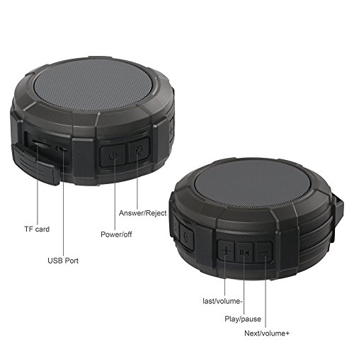 ?Playback time: 6-8 hours ? Charging time: 3 hours ?Speaker: 5Wx2, 4Ω ? Battery: 3.7V/500 MAH ?Waterproof Level: IPX5 ?Connection range: up to 50 feet ?Frequency Response: 120Hz-22 KHz ?Distortion: ≤0.1% @1W ?Charging Voltage: DC 5V. ?Charging Time: 3-4hours ?Item Dimension: 3.07X1.89X1.53inches ?Net Weight: 4.3ounces ?Package Dimension:4.6X3.74X1.77 inches ?Package Weight:5.7 ounces