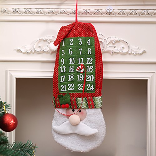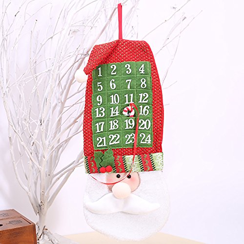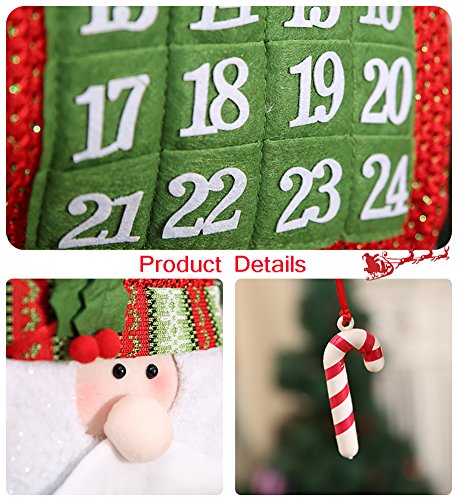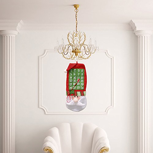Meelino 3D Santa Felt Advent Countdown to Christmas Calendar with Pocket Wall Trees Hanging Ornaments For Home Office Party Decoration (Red and White, Santa Claus)
