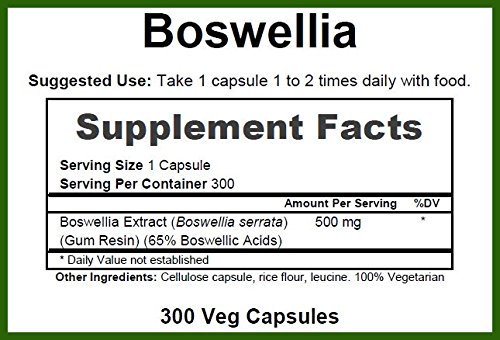 -. Feature : Effective Double Strength Capsule (500 mg) / High-Potency Standardized Boswellia Extract (65% Boswellic Acids) / Best Value for a High-Potency Boswellia Extract Supplement / 100% Vegetarian Product Manufactured in the USA (GMP Certified Facility) / FREE SHIPPING / Biodegradable Packaging