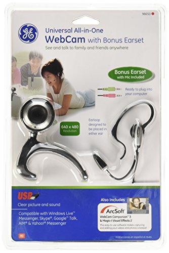 -. Binding : Personal Computers -. Brand : GE -. EAN : 0999993791081 -. Feature : Snapshot button for easy picture taking / Use on a computer monitor or desktop / Lightweight headset provides for a comfortable fit and crystal clear sound / Adjustable microphone allows a perfect fit every time / Edit photos or video with the included Arcsoft software -. HardwarePlatform : pc -. IsAutographed : 0 -. IsMemorabilia : 0 -. Label : General Electric -. Manufacturer : General Electric -. Model : 98650 -. MPN : 98650 -. NumberOfItems : 1 -. PackageQuantity : 1 -. PartNumber : 98650 -. ProductGroup : CE -. ProductTypeName : WEBCAM -. Publisher : General Electric -. SKU : DOBA-JAS98650 -. Studio : General Electric -. Title : GE 98650 Webcam and Headset Kit -. UPC : 999993368528 -. Warranty : ONE YEAR