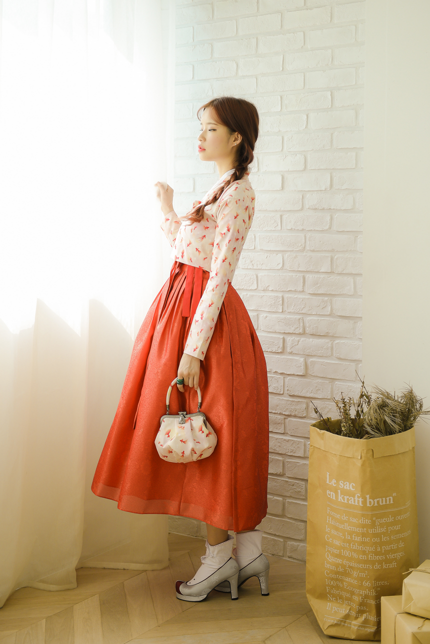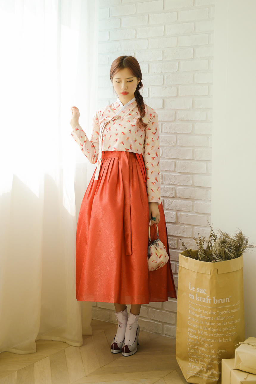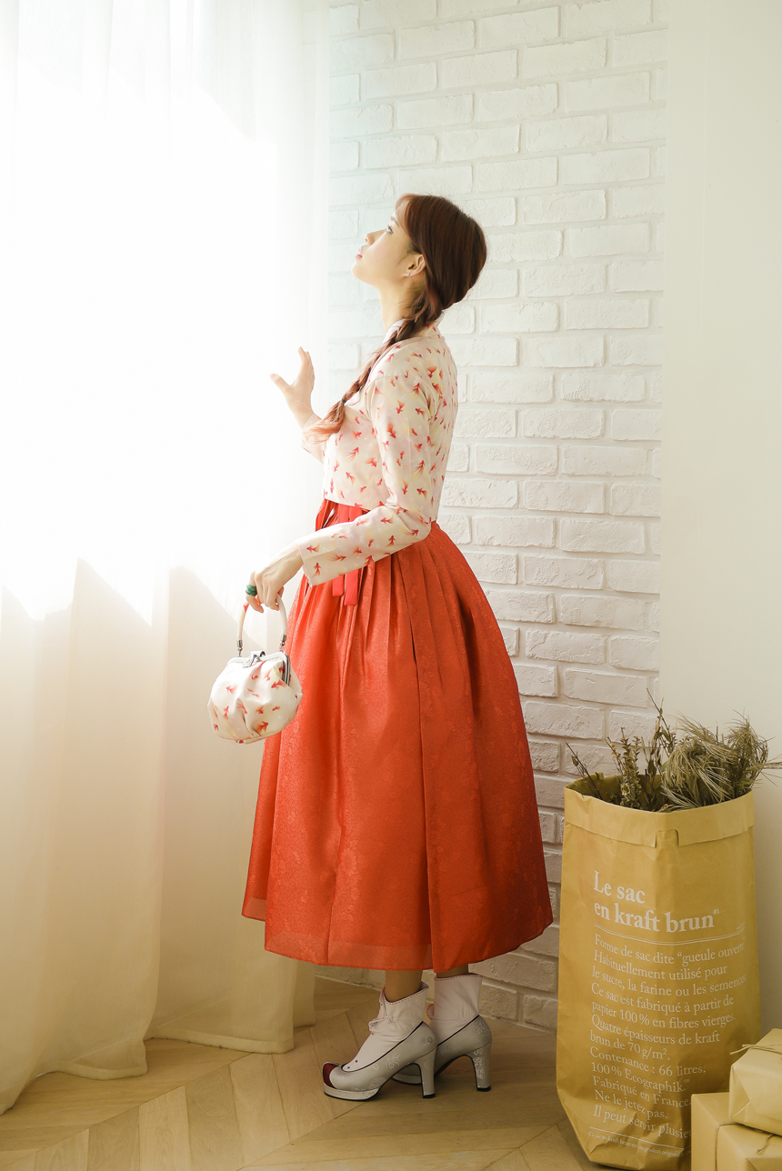 꽃닮 허리치마 수국단 단감색