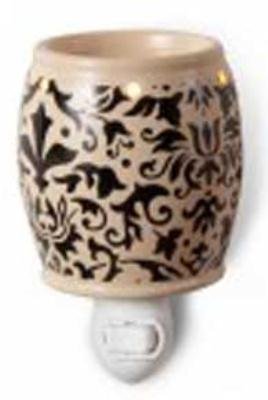 Damask Plug-in Ceramic Stoneware Electric Tart Candle Warmer (Black)