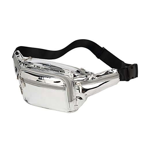 Hearty Trendy Fashion Metallic Patent Leather 6 Pockets Fanny Pack Waist Pack