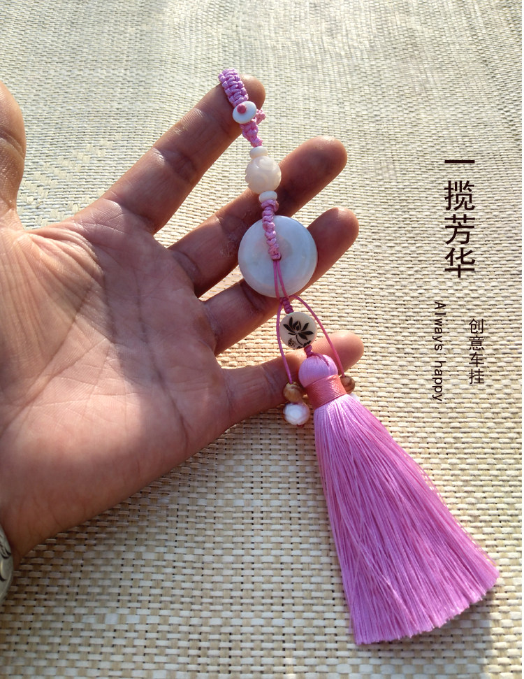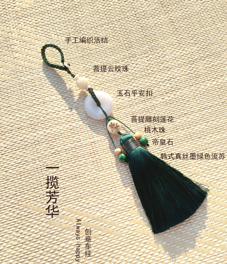 【一揽芳华】翡翠玉石平安扣 菩提子 流苏挂件汽车钥匙挂件挂饰