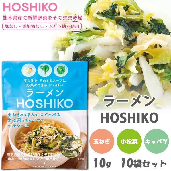 | ゆたかな水と土壌、温暖な気候に恵まれた熊本の専用農地で作られた、玉ねぎ、小松菜、キャベツの乾燥野菜ミックス。野菜のうまみが凝縮されているから、戻し汁がスープになって、いつものラーメンもぐっと美味しくヘルシーに♪包丁いらず・カット不要で、忙しいときにもおすすめです☆ |