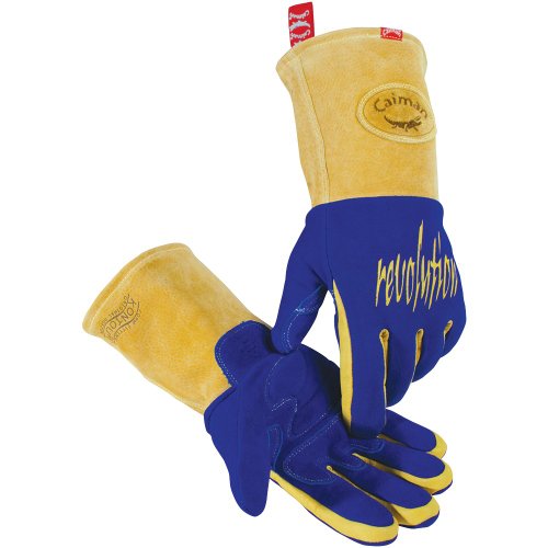 Caiman RevolutionTM 1817 Genuine American Deerskin Welding Glove (Large, Blue/Yellow)