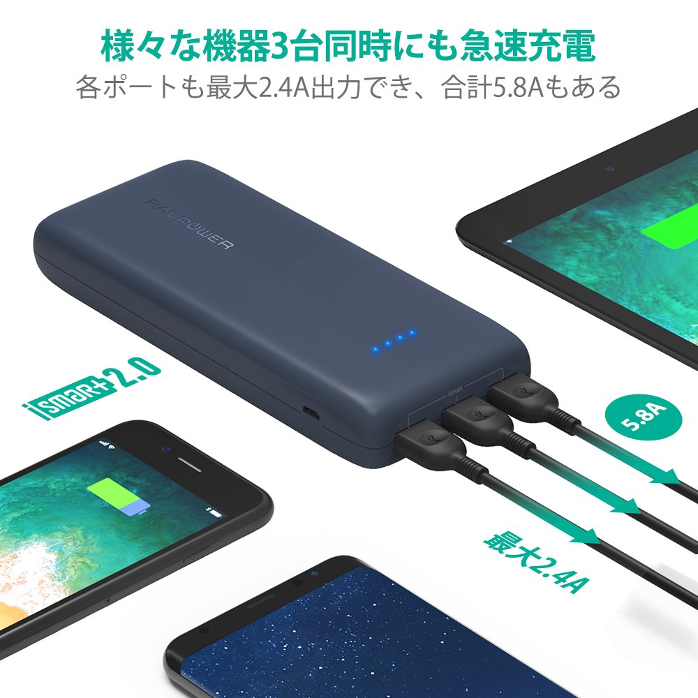 RAVPower 22000 mAh mobile battery (3 ports & fast charge)