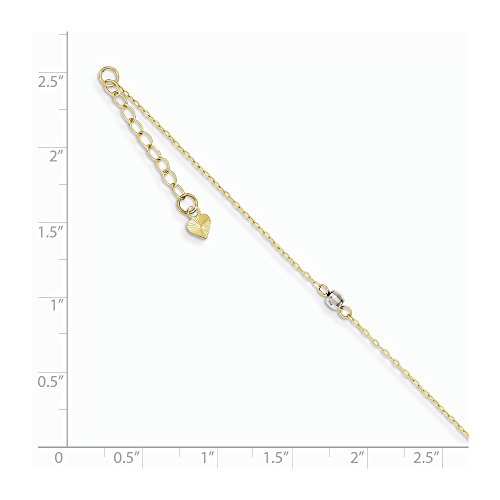 Solid 14k Gold Two-tone Mirror Bead Anklet 9" (3mm)