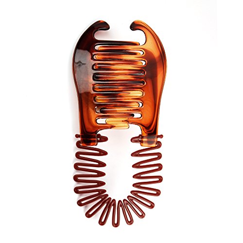 - Feature : Large flex clincher comb has a wide tooth claw connected with a flew comb / Unique design stretches to hold large pieces of hair / Holds hair in place all day / Color: Brown / Package includes 1 comb