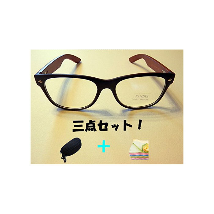 원본상품명: 【 得店(Z.T.S) 】 伊達メガネ メンズ レディス ブランド クリア レンズ テンプル が 木製 ファッション 男女兼用 c09 【 メガネケス() と 眼鏡拭き の 三点 セット 】