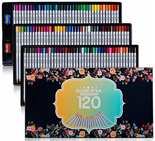 SUDEE STILE Colored Pencils 120 Unique Colors (No Duplicates) Art Drawing Colored Pencils Set with Case with Sharpener